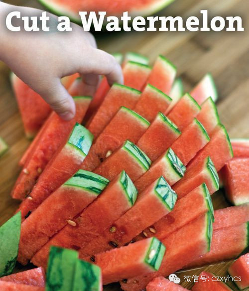 1、这样切西瓜真的是小孩子很容易吃,大人也不用怕吃到衣服上。