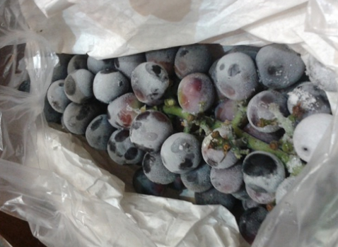 2、在冻到葡萄整个都很硬的时候,拿出来。