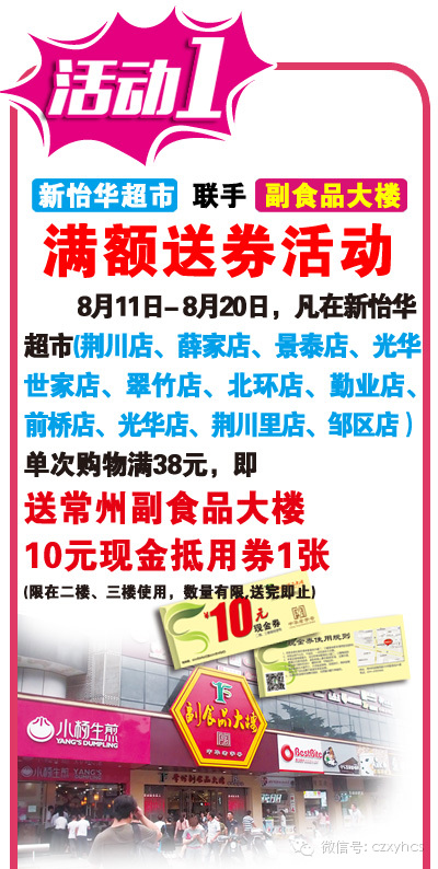活动门店:荆川店、湖塘店、邹区店、翠竹店、北环店、勤业店、前桥店、光华店、荆川里店、薛家店、景泰店、光华世家店。