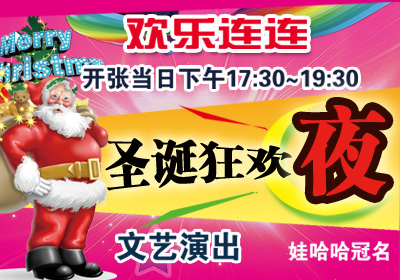 亲们有福了哦!逢圣诞,庆开张!如此欢腾的日子里,新怡华特别为您准备了超多奖品,超多特价优惠活动,超精彩文艺演出,还有亲爱的滴圣诞老人给小朋友发糖果哦!