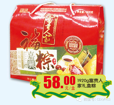 富贵人家嘉兴福粽礼盒:嘉兴粽子是浙江嘉兴汉族传统名点,具有悠久历史。嘉兴粽子以糯而不糊,肥而不腻,香糯可口,咸甜适中而著称。